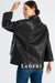 This women's black oversize lambskin leather jacket is perfect for those seeking a sophisticated look. Featuring a single-button closure and wide collar detail, this jacket exudes elegance. The lambskin leather is known for its soft texture and exceptional durability, ensuring both comfort and longevity. This piece stands out with its modern design, while the roomy pockets add practicality. A timeless style icon, it's a must-have addition to any wardrobe.